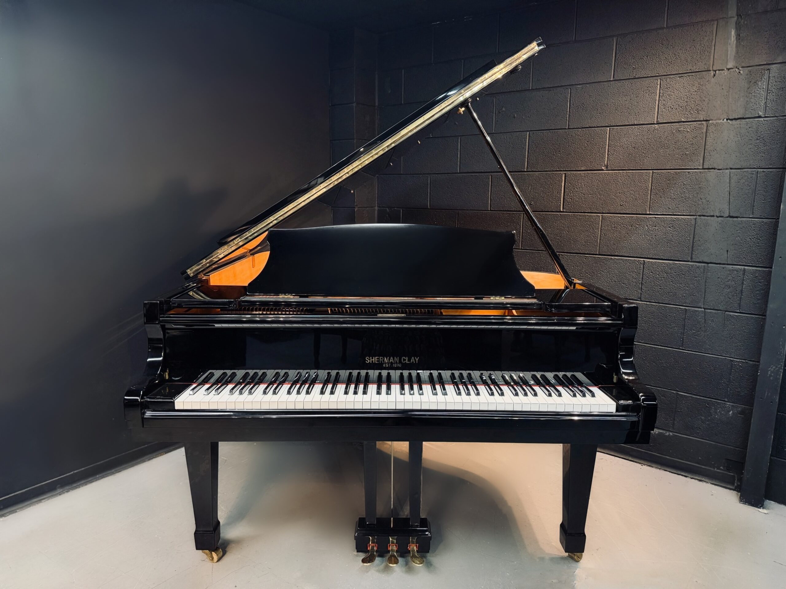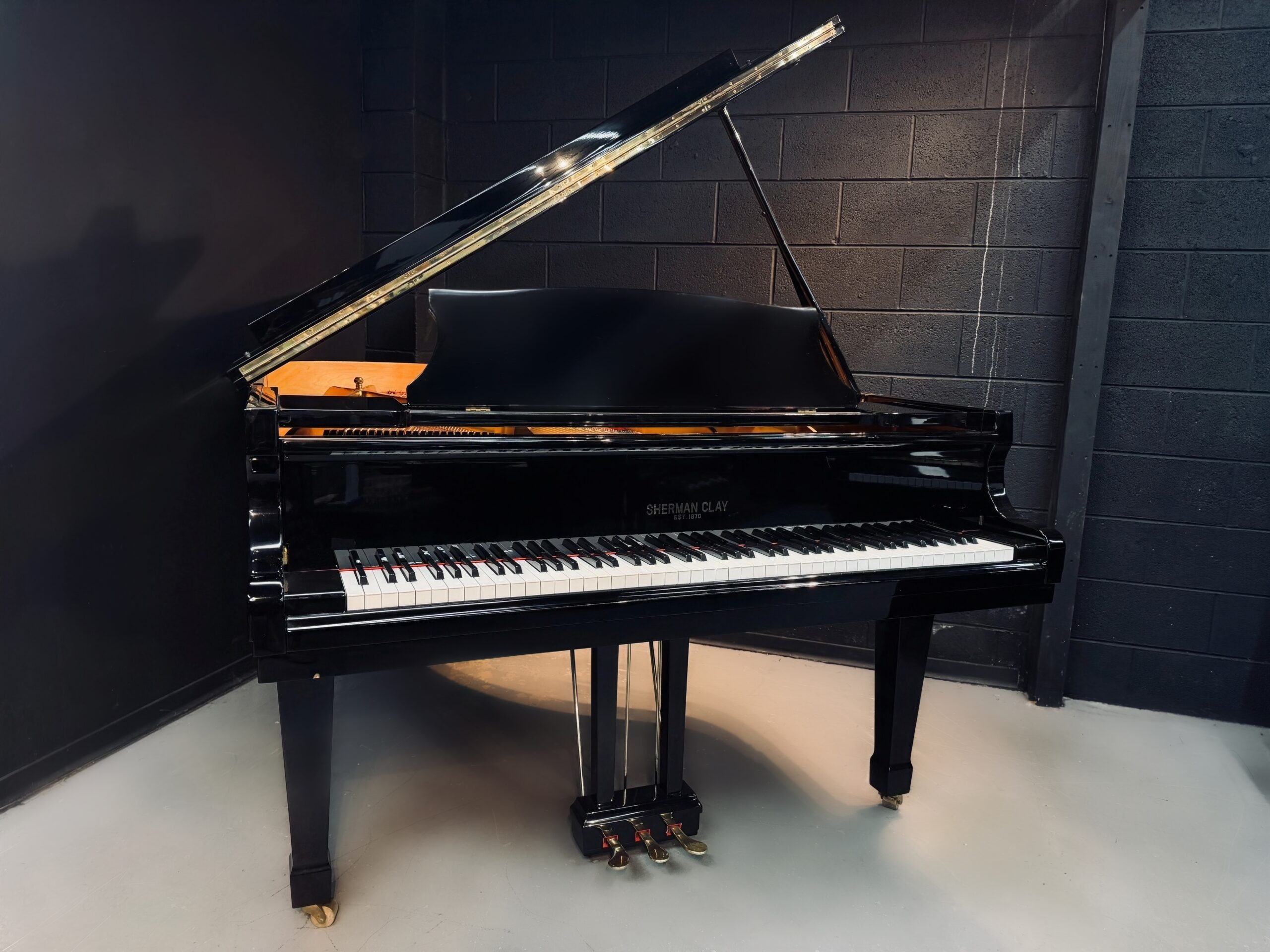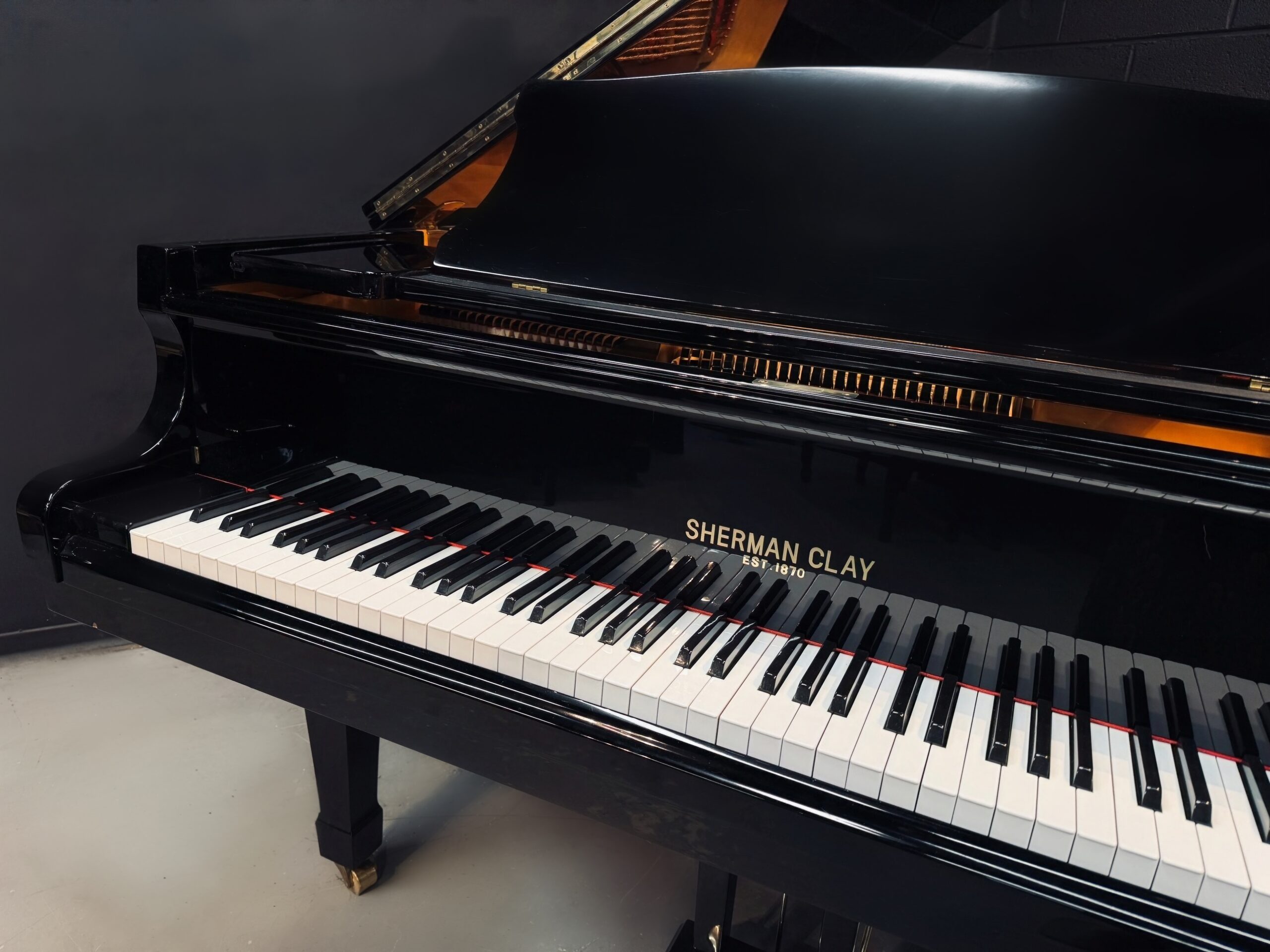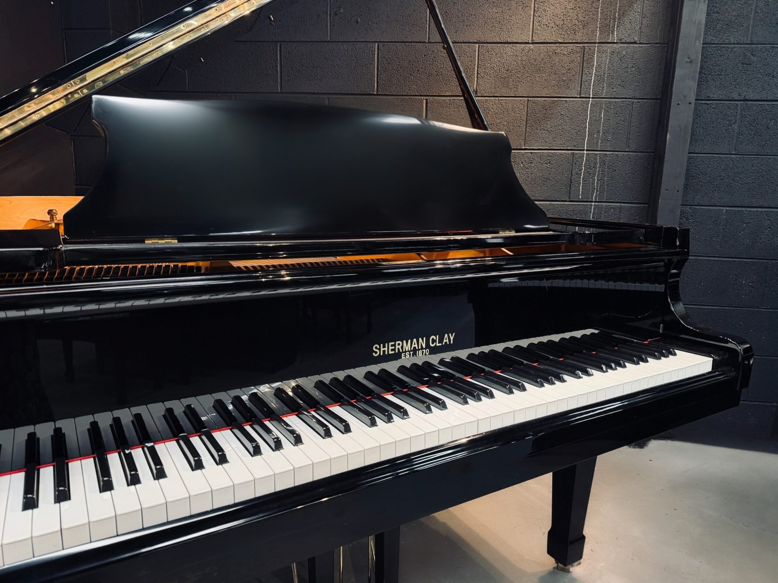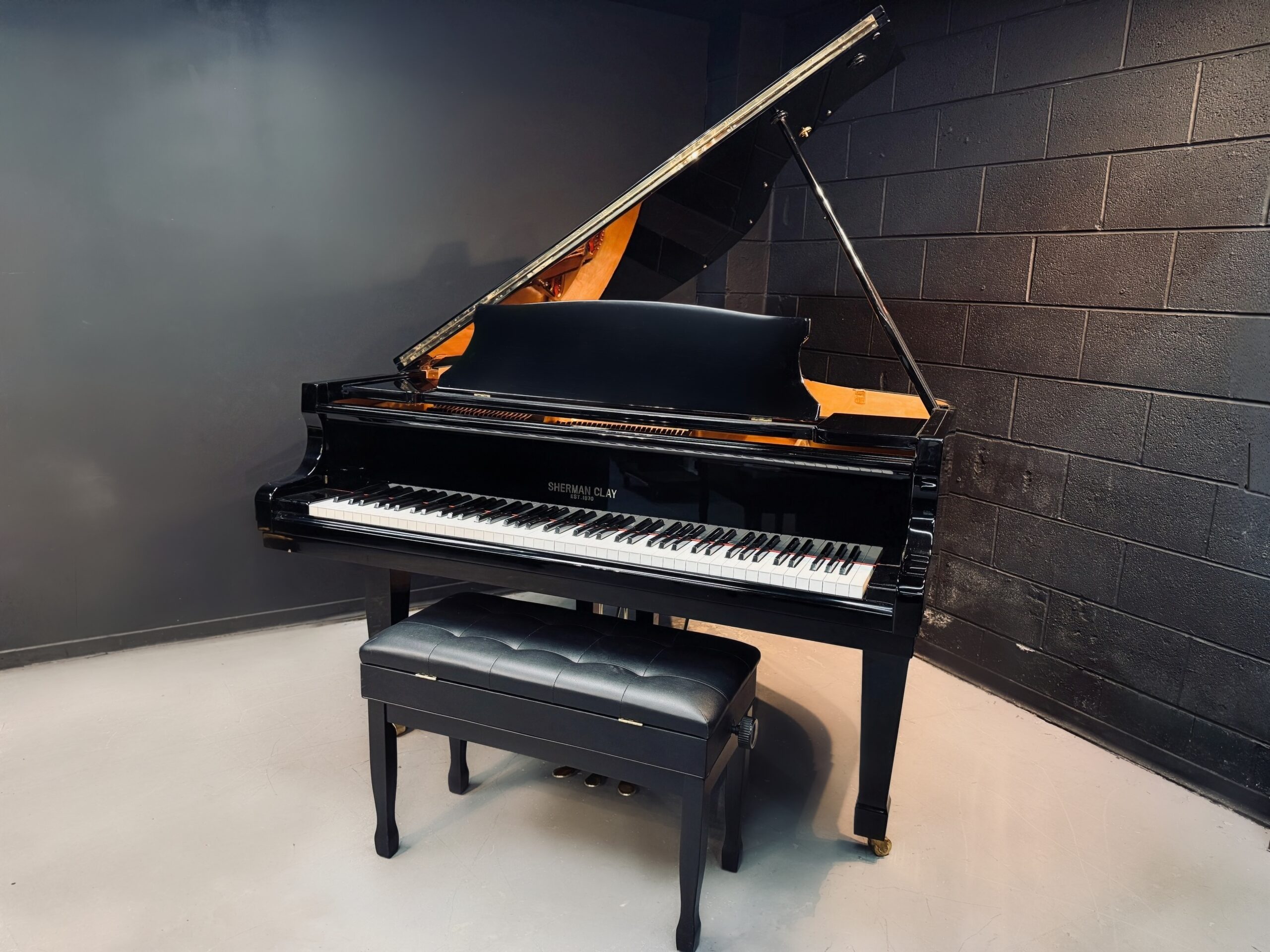 Now available on our showroom floor, this 5’9″ Sherman Clay grand offers rich musical depth in a practical, home-friendly size, making it an excellent fit for homes, studios, churches, and intimate venues.